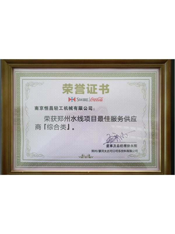 南京恒昌包裝作為后段整包商,在鄭州太古可口可樂48000bph水線項目中獲得“最佳服務(wù)供應(yīng)商”殊榮!